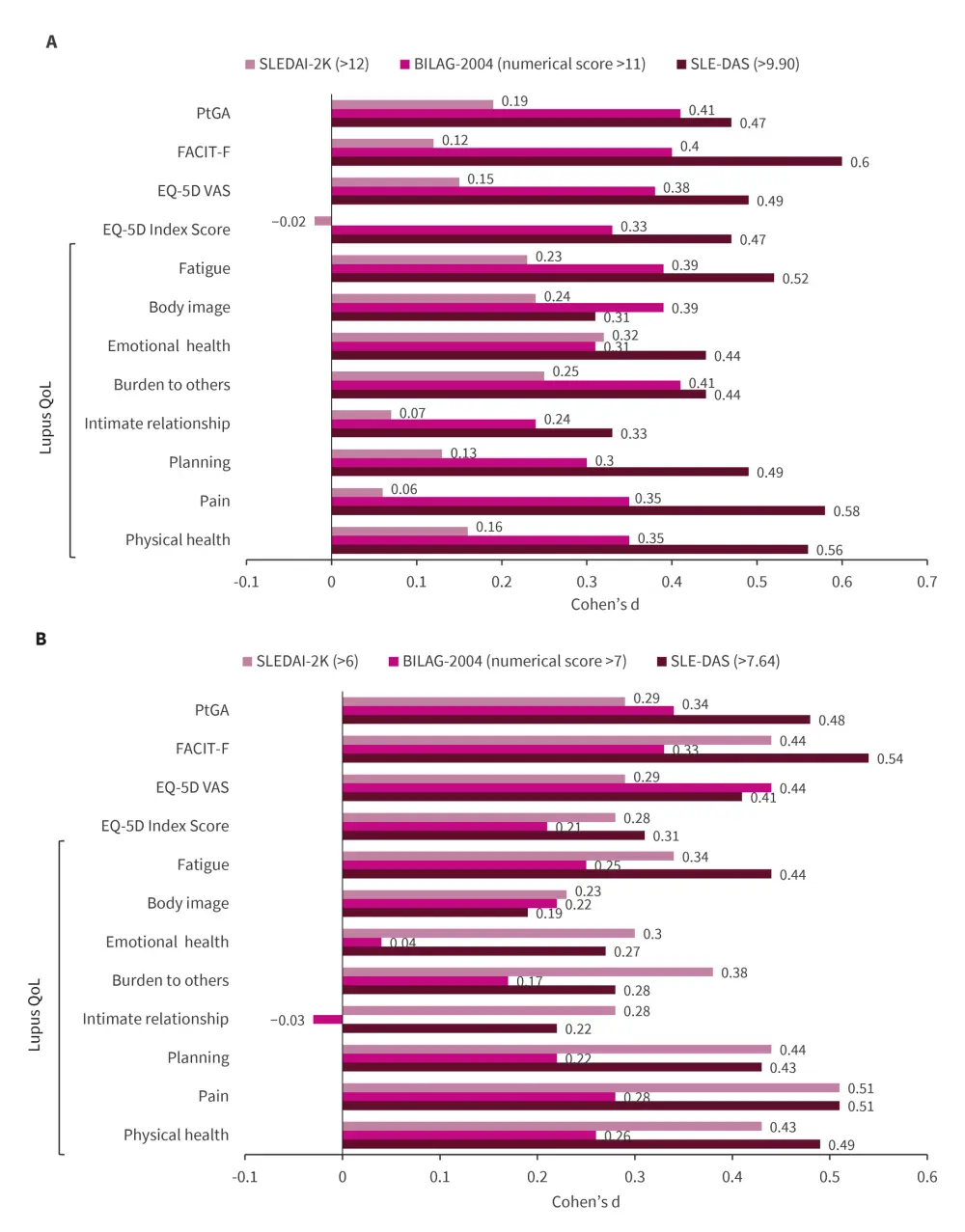 BILAG, British Isles Lupus Assessment Group; EQ-5D, EuroQoL-5D; FACIT-F, Functional Assessment of Chronic Illness Therapy – Fatigue; MSDA, Moderate-to-Severe Disease Activity; PtGA, Patient Global Assessment; QoL, quality of life; SDA, Severe Disease Activity; SLEDAI-2K, Systemic Lupus Erythematosus Disease Activity Index 2000; VAS, visual analog scale.