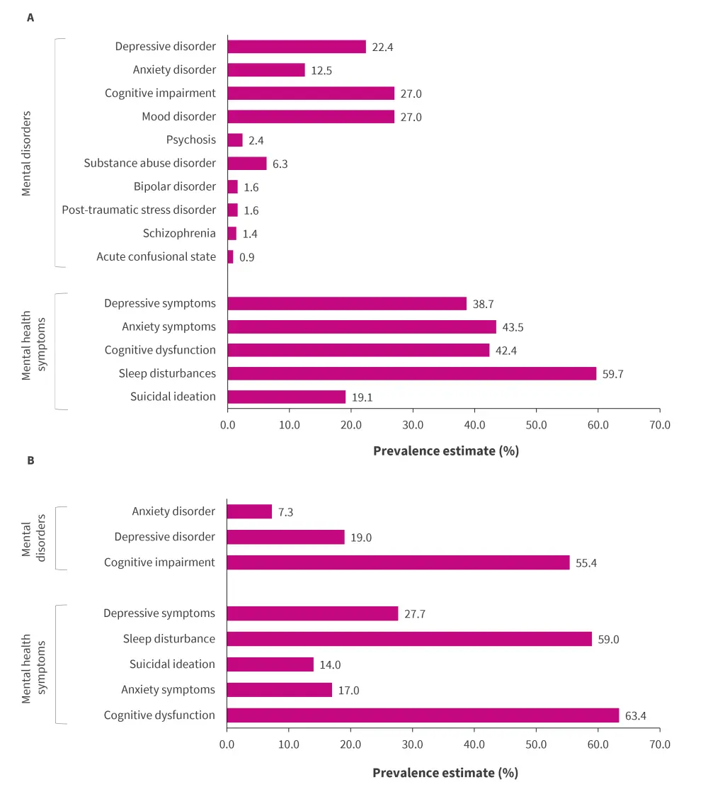 Figure 1. Prevalence of mental health conditions among A adults and B children with SLE*
