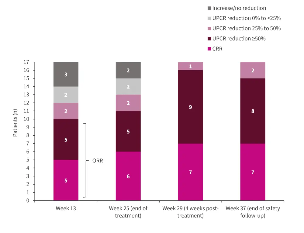 CRR, complete renal response; ORR, overall renal response; UPCR, urine protein to creatinine ratios.